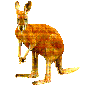 The Kangaroo is probably Australia's most famous animal. When Australia's first European Explorers saw a strange animal as tall as a human, leaping around like giant grasshoppers they couldn't believe their eyes! They asked Australia's original inhabitants -the Aborigines - ' What are these animals ?' They replied 'kangaroo'. Now to the Aborigines, this meant 'I don't understand you'. The Europeans thought they were referring to the big-footed hoppers, so they named them Kangaroos. Kangaroos are often just called 'Roos '. There are 60 different kinds of Kangaroos and 12 relatives called Rat Kangaroos. Some species are common while others are endangered. Males are larger than females in all species. The smallest is the female Warabi Rock Wallaby which is 2 pounds. The largest Kangaroo is the male Red and Grey which weigh 200 pounds. Some Kangaroos live alone, some live in families with a bond that lasts a lifetime, while some travel in large mobs. A Kangaroo can sprint 40 mph over a 1-2 mile distance and 20 mph for long distances such as 10 miles or more. Kangaroos are shy, mainly nocturnal animals, but some species are active at dawn and dusk. Generally, they live for 20 years in captivity and approximately six years in the wild. The Australian Kangaroos are going blind. In the last months a virus has been spreading like an epidemic. It is affecting Western Greys, Eastern Greys and there are even some reported cases of Red kangaroos being affected. Some roos have adjusted. Others in bush country stumble and bump into trees and the like and stress. The virus can be a death threat because its aggressive path attacks the brain and eyes of the kangaroo. Once the Kangaroo is blind it is permanent. Current research (August 1995) discovered the virus which is attacking Australia's national emblem. It is transmitted by the bite of an insect but the problem is, scientists don't know which insect it is!! They are currently trying to isolate the culprit by catching insects in an insect trap (which is attached to the roof of a ute-car) and driving through Kangaroo habitat. It is believed the virus has been around before and that this disease could be cyclical. Each time the outbreak has followed a drought. The most common colours of Kangaroos are blue, grey and red, but they can also be black, yellow or brown. Occasionally there are albino or white kangaroos. Some of the species of Kangaroos are: